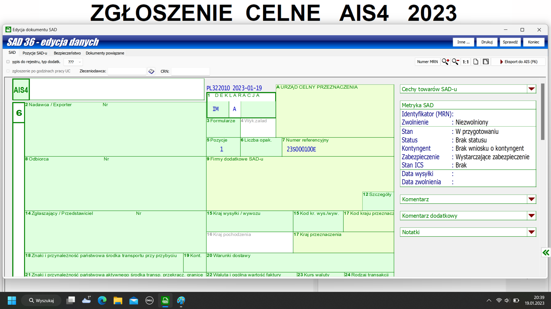 Zgłoszenia celne próba